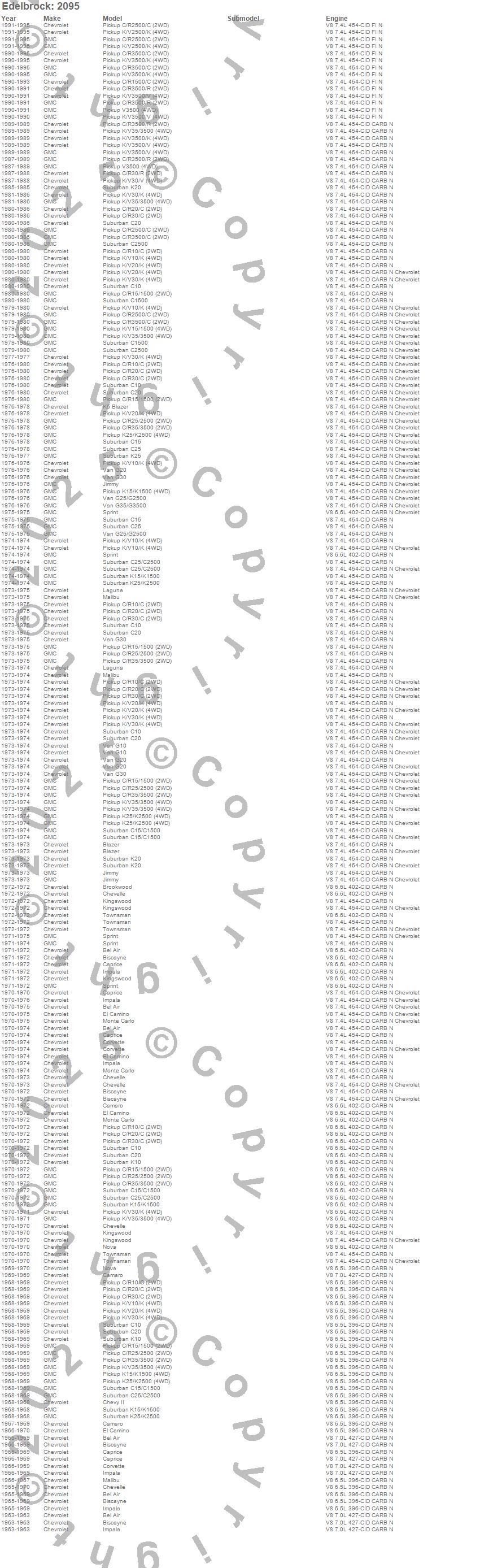 Bel Air, Biscayne, Blazer, Blazer K5, Brookwood, C10 Pickup, C10 Suburban, C15 Suburban, C15/C1500, C15/C1500 Suburban, C1500, C1500 Pickup, C1500 Suburban, C20 Pickup, C20 Suburban, C25 Suburban, C25/C2500 Pickup, C25/C2500 Suburban, C2500 Pickup, C2500 Suburban more…