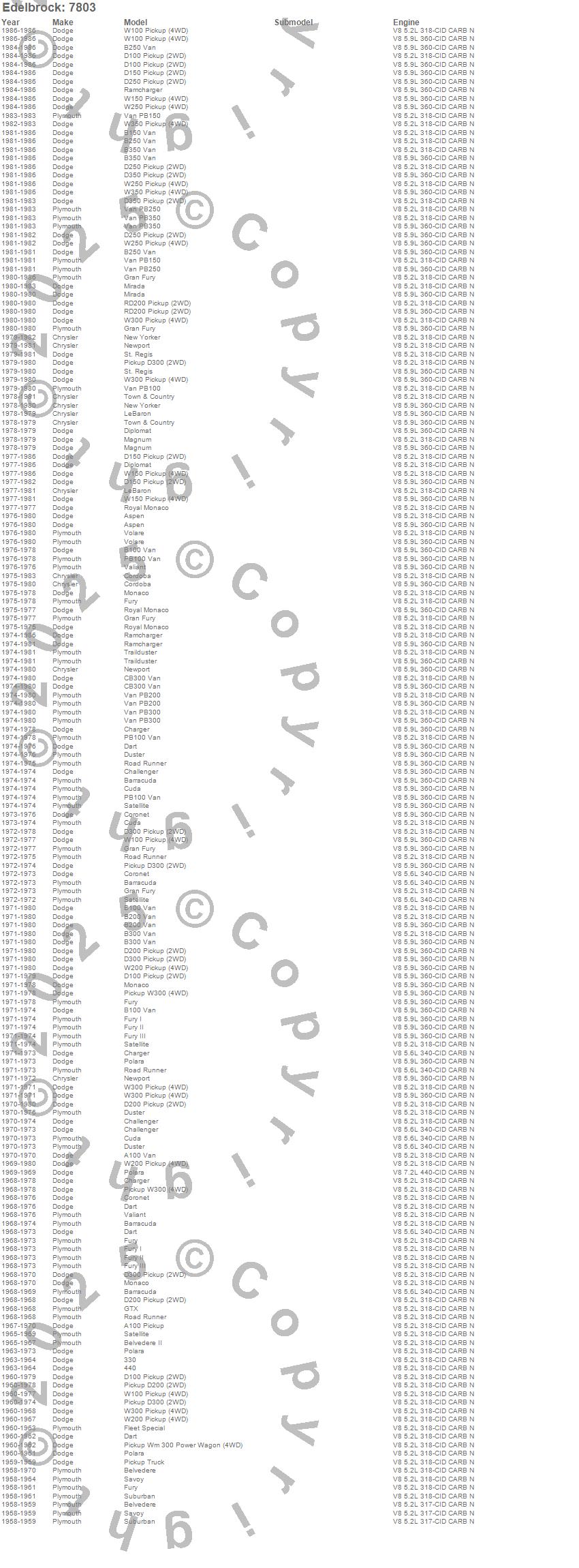 330, 440, 880, A100 Truck, A100 Van, Aspen, B100 Van, B150 Van, B200 Van, B250 Van, B300 Van, B350 Van, Barracuda, Belvedere, Belvedere II, CB300 Van, Challenger, Charger, Cordoba, Coronet more…