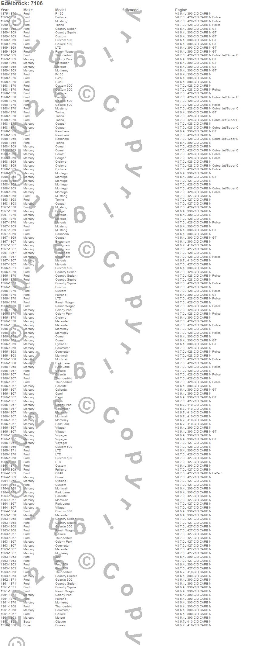 Below is an abreviated list of applications for the Performer RPM Camshaft Kit.