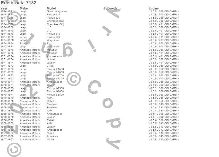 Below is an abreviated list of applications for the Performer RPM Camshaft Kit.