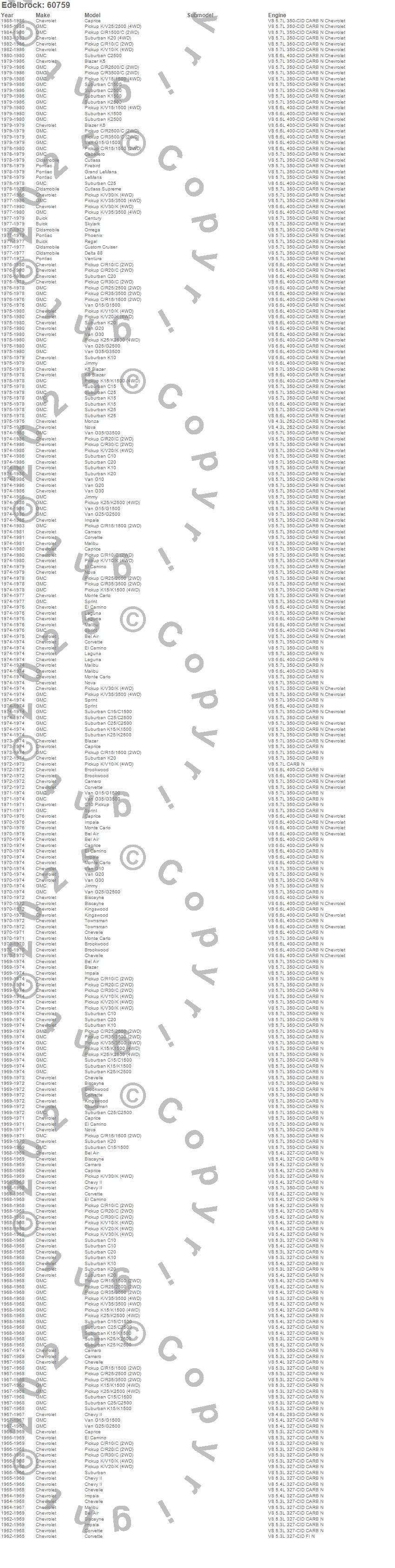 Below is an abreviated list of applications for the Performer Cylinder Head.