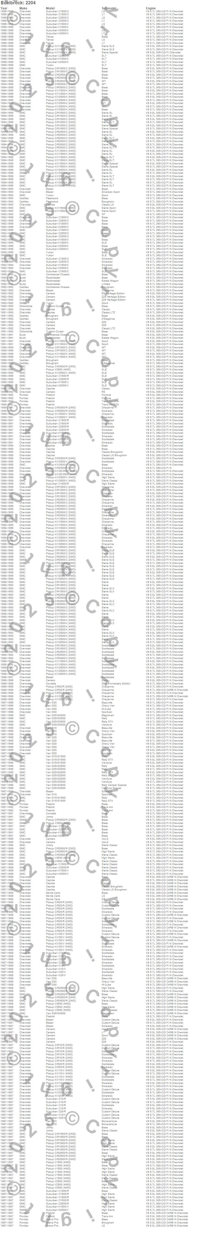 Below is an abreviated list of applications for the Rollin Thunder Camshaft.