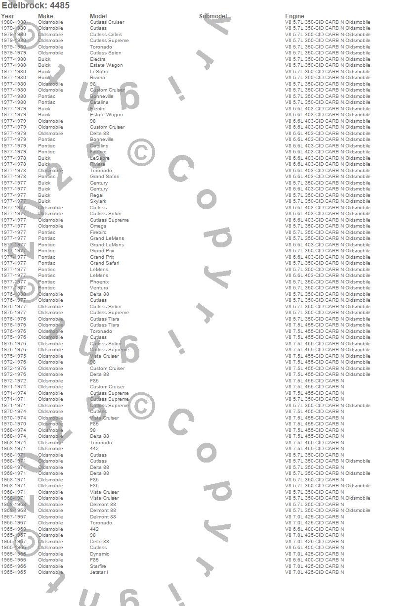 442, 98, Bonneville, Catalina, Century, Custom Cruiser, Cutlass, Cutlass Calais, Cutlass Cruiser, Cutlass Salon, Cutlass Supreme, Cutlass Tiara, Delmont 88, Delta 88, Dynamic, Electra, Estate Wagon, F85, Firebird, Grand LeMans more...