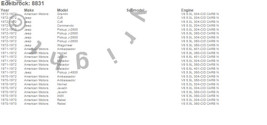 Ambassador, AMX, CJ5, CJ6, Gremlin, Hornet, J-2500, J-2600, J-4800, Javelin, Jeepster, Matador, Rebel, Wagoneer, American Motors, Jeep, 1972, 1971, 1970 more…