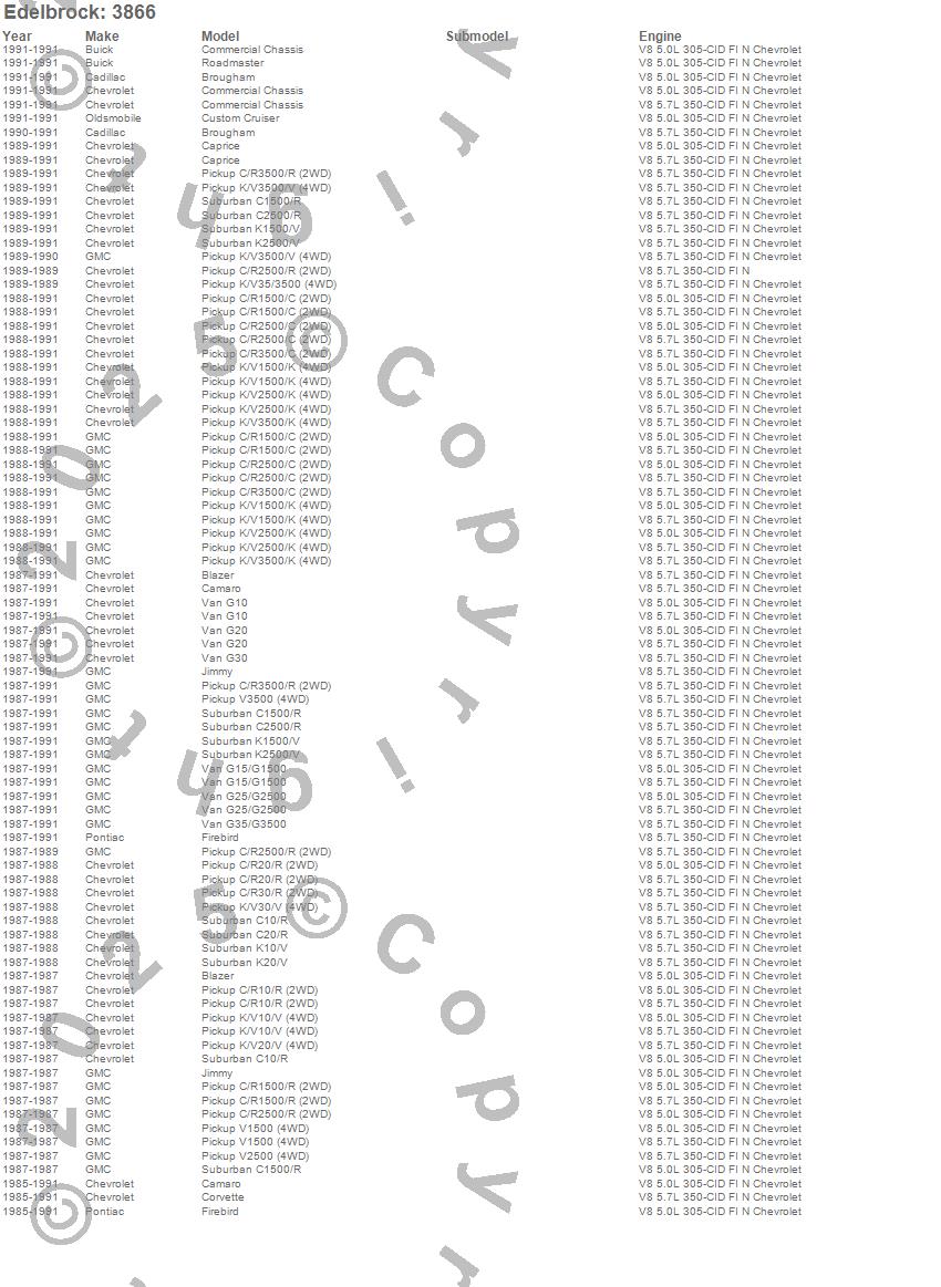 Below is an abreviated list of applications for the High-Flo TPI Runners Manifold Gasket Set.