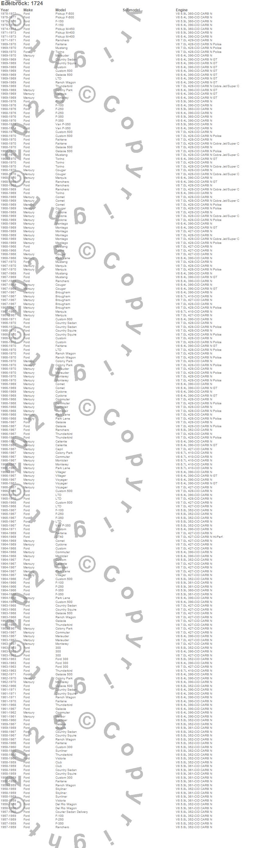 Breezeway, Brougham, Caliente, Club, Club Cargo, Club Wagon, Colony Park, Comet, Commuter, Cougar, Country Sedan, Country Squire, Courier Sedan Delivery, Custom, Custom 300, Custom 500, Cyclone, Del Rio Wagon, F Series, F-100 more…
