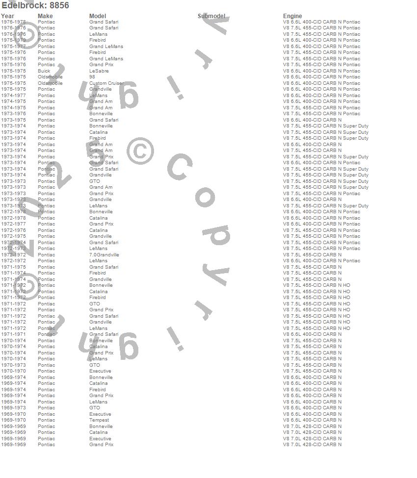 98, Bonneville, Catalina, Catalina Ventura, Custom Cruiser, Executive, Firebird, Firebird Trans Am, Grand Am, Grand LeMans, Grand Prix, Grand Safari, Grandville, GTO, LeMans, LeSabre, Safari, Tempest, Toronado, Buick more…