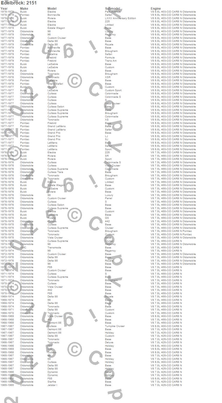 Below is an abreviated list of applications for the Performer Olds 455 Intake Manifold.