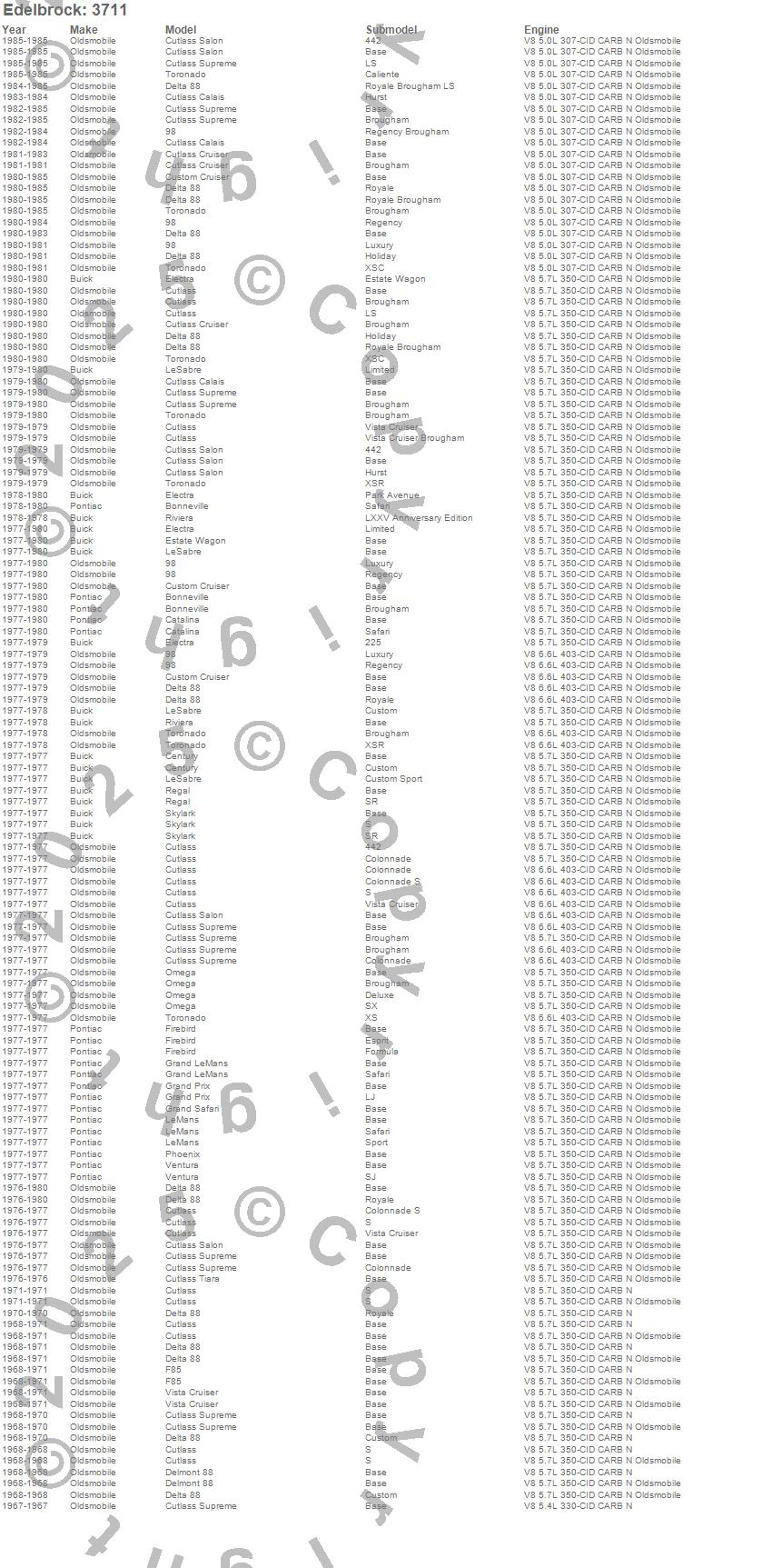 Below is an abreviated list of applications for the Performer Olds 350 Intake Manifold.