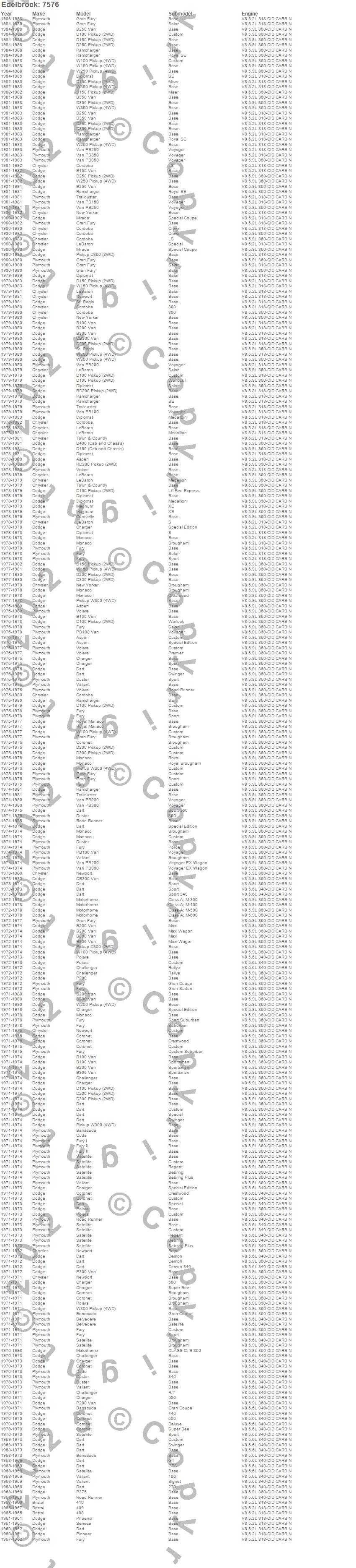 Below is an abreviated list of applications for the RPM Air Gap 340/360 Intake Manifold.