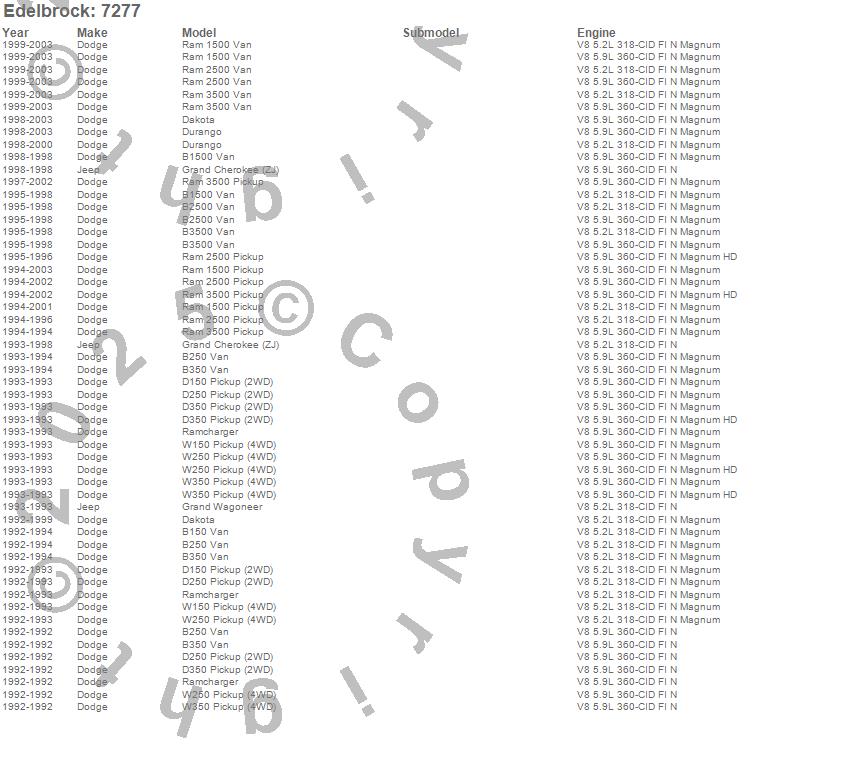 B150 Van, B1500 Van, B250 Van, B2500 Van, B350 Van, B3500 Van, D150 Pickup, D250 Pickup, D350 Pickup, Dakota, Durango, Grand Cherokee (ZJ), Grand Wagoneer, Ram 1500, Ram 1500 Van, Ram 2500, Ram 2500 Van, Ram 3500, Ram 3500 Van, Ramcharger more…