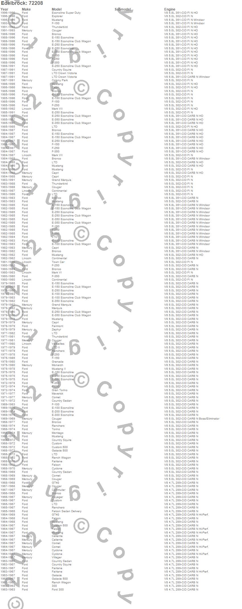 Bronco, Caliente, Capri, Club Cargo, Colony Park, Comet, Commuter, Continental, Cougar, Country Sedan, Country Squire, Custom, Custom 500, Cyclone, E-100 Econoline, E-150 Econoline, E-150 Econoline Club Wagon, E-200 Econoline, E-250 Econoline, E-300 Econoline more...