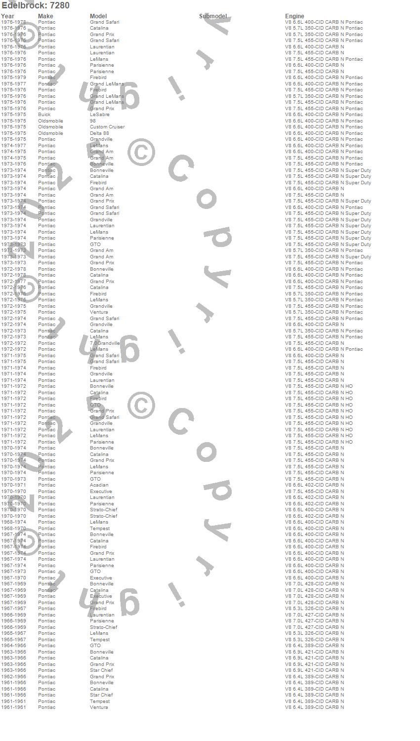 Bonneville, Catalina, Catalina Ventura, Executive, Firebird, Grand Am, Grand LeMans, Grand Prix, Grand Safari, Grandville, GTO, LeMans, Safari, Star Chief, Tempest, Ventura, Pontiac, 1976, 1975, 1974 more…