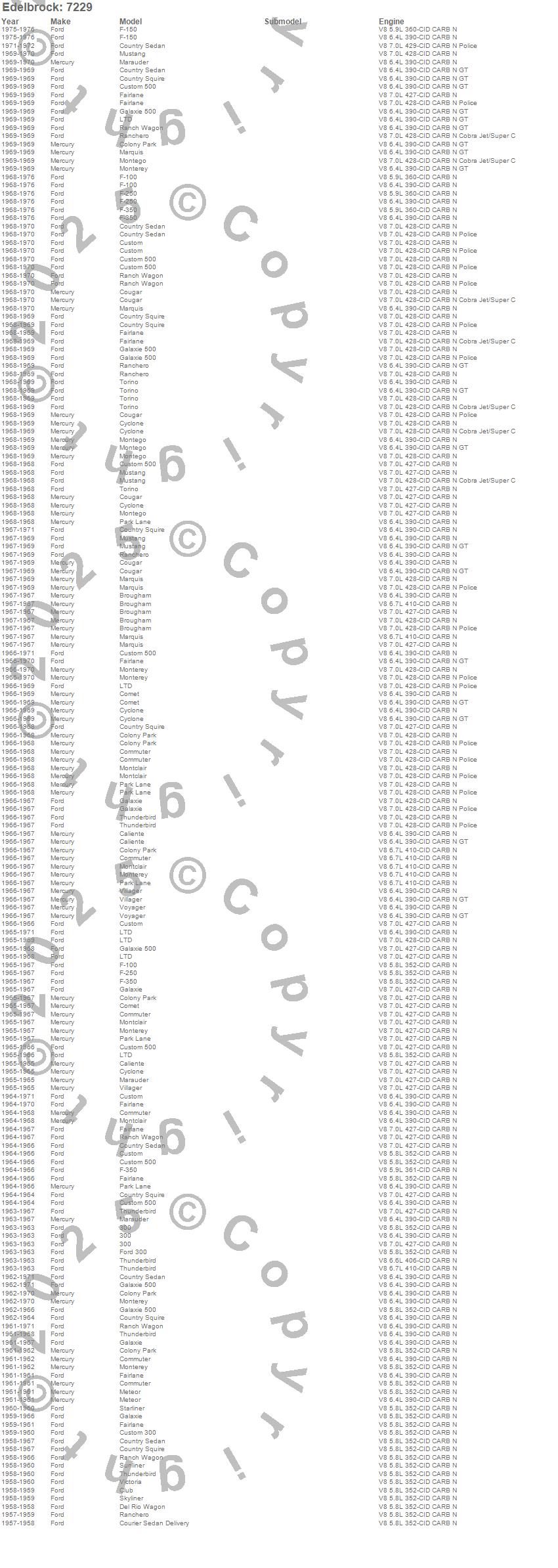 Breezeway, Brougham, Caliente, Club Cargo, Colony Park, Comet, Commuter, Cougar, Country Sedan, Country Squire, Courier Sedan Delivery, Custom, Custom 300, Custom 500, Cyclone, Del Rio Wagon, F Series, F-100, F-150, F-250 more…