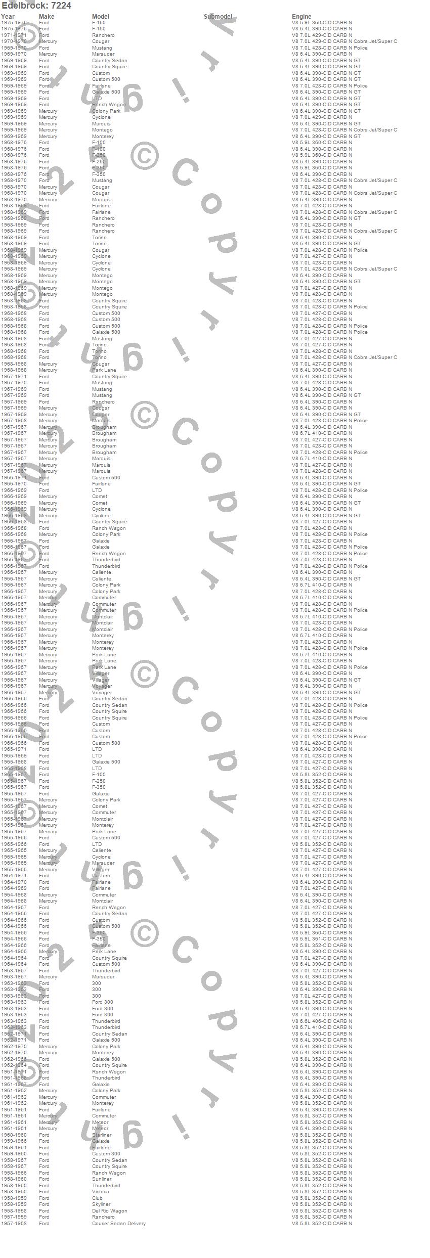 Breezeway, Brougham, Caliente, Club Cargo, Colony Park, Comet, Commuter, Cougar, Country Sedan, Country Squire, Courier Sedan Delivery, Custom, Custom 300, Custom 500, Cyclone, Del Rio Wagon, F Series, F-100, F-150, F-250 more…