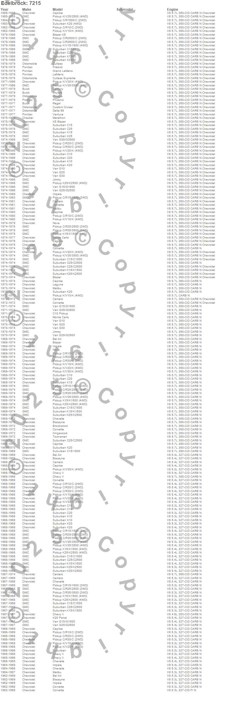Bel Air, Biscayne, Blazer, Blazer K5, Brookwood, C10 Pickup, C10 Suburban, C15 Suburban, C15/C1500, C15/C1500 Suburban, C1500, C1500 Suburban, C20 Pickup, C20 Suburban, C25 Suburban, C25/C2500 Pickup, C25/C2500 Suburban, C2500 Pickup, C2500 Suburban, C30 Pickup more...
