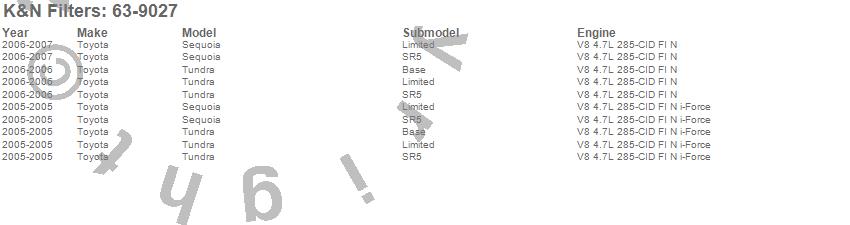 Below is an abreviated list of applications for the 63 Series Aircharger Kit.