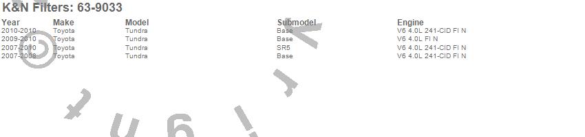 Below is an abreviated list of applications for the 63 Series Aircharger Kit.