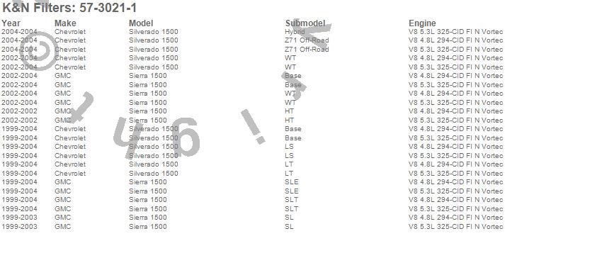 Below is an abreviated list of applications for the Filtercharger Injection Performance Kit.