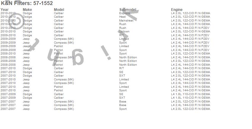 Below is an abreviated list of applications for the Filtercharger Injection Performance Kit.