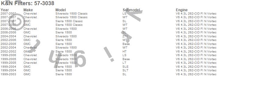 Below is an abreviated list of applications for the Filtercharger Injection Performance Kit.