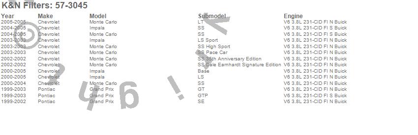 Grand Prix, Impala, Monte Carlo, Chevrolet, Pontiac, 2005, 2004, 2003, 2002, 2001, 2000, 1999 more…