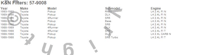 Below is an abreviated list of applications for the Filtercharger Injection Performance Kit.