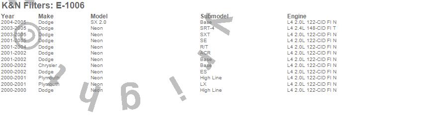 Neon, SX 2.0, Chrysler, Dodge, Plymouth, 2005, 2004, 2003, 2002, 2001, 2000 more…