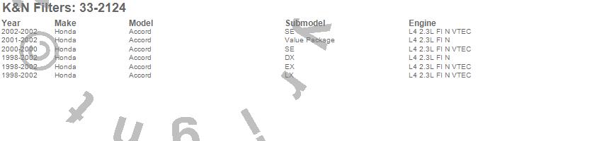 Below is an abreviated list of applications for the Air Filter.