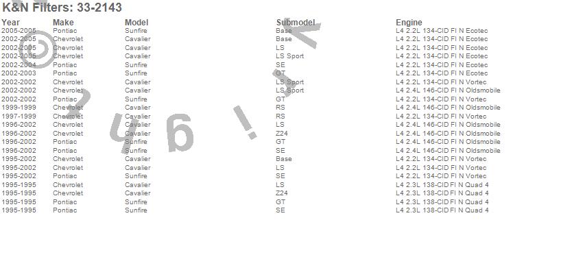 Cavalier, Sunfire, Chevrolet, Pontiac, 2005, 2004, 2003, 2002, 2001, 2000, 1999, 1998, 1997, 1996, 1995 more…