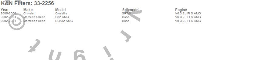 Below is an abreviated list of applications for the Air Filter.