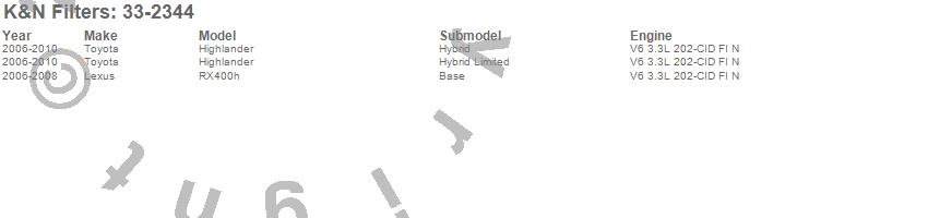 Below is an abreviated list of applications for the Air Filter.