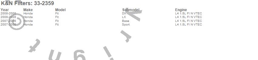 Below is an abreviated list of applications for the Air Filter.