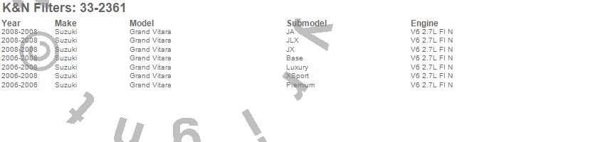 Below is an abreviated list of applications for the Air Filter.