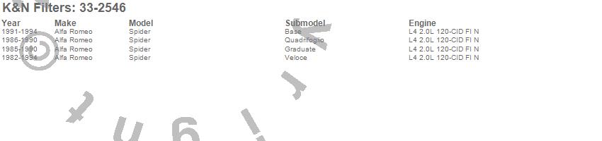 Below is an abreviated list of applications for the Air Filter.