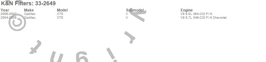 Below is an abreviated list of applications for the Air Filter.