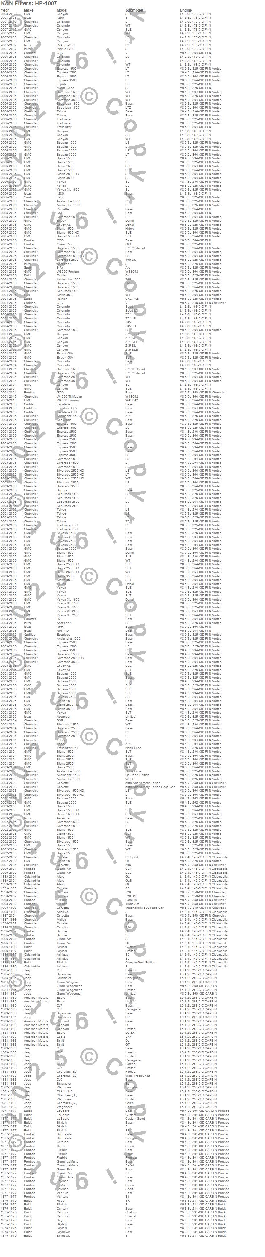 Below is an abreviated list of applications for the Performance Gold Oil Filter.