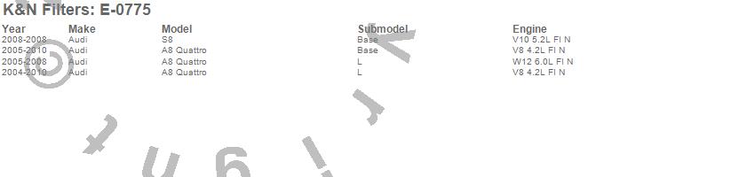 Below is an abreviated list of applications for the Air Filter.