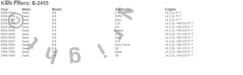 Below is an abreviated list of applications for the Air Filter.