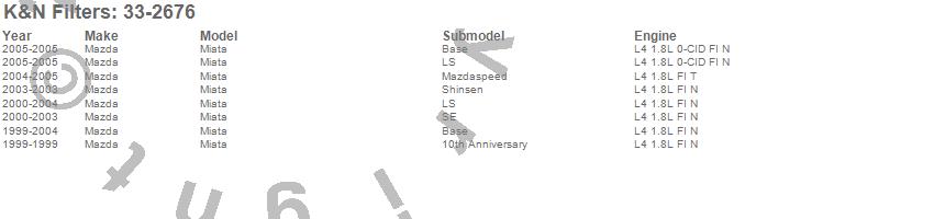 Below is an abreviated list of applications for the Air Filter.