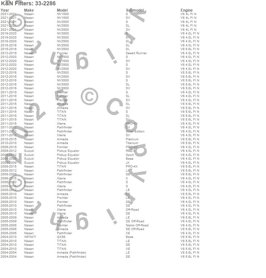 Armada, Equator, Frontier, NV1500, NV2500, NV3500, Pathfinder, QX56, Titan, Xterra, Infiniti, Nissan, Suzuki, 2016, 2015, 2014, 2013, 2012, 2011, 2010 more…