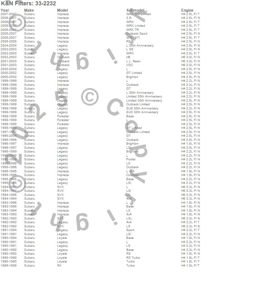 Forester, Impreza, Legacy, Loyale, Outback, RX, SVX, Subaru, 2007, 2006, 2005, 2004, 2003, 2002, 2001, 2000, 1999, 1998, 1997, 1996 more…