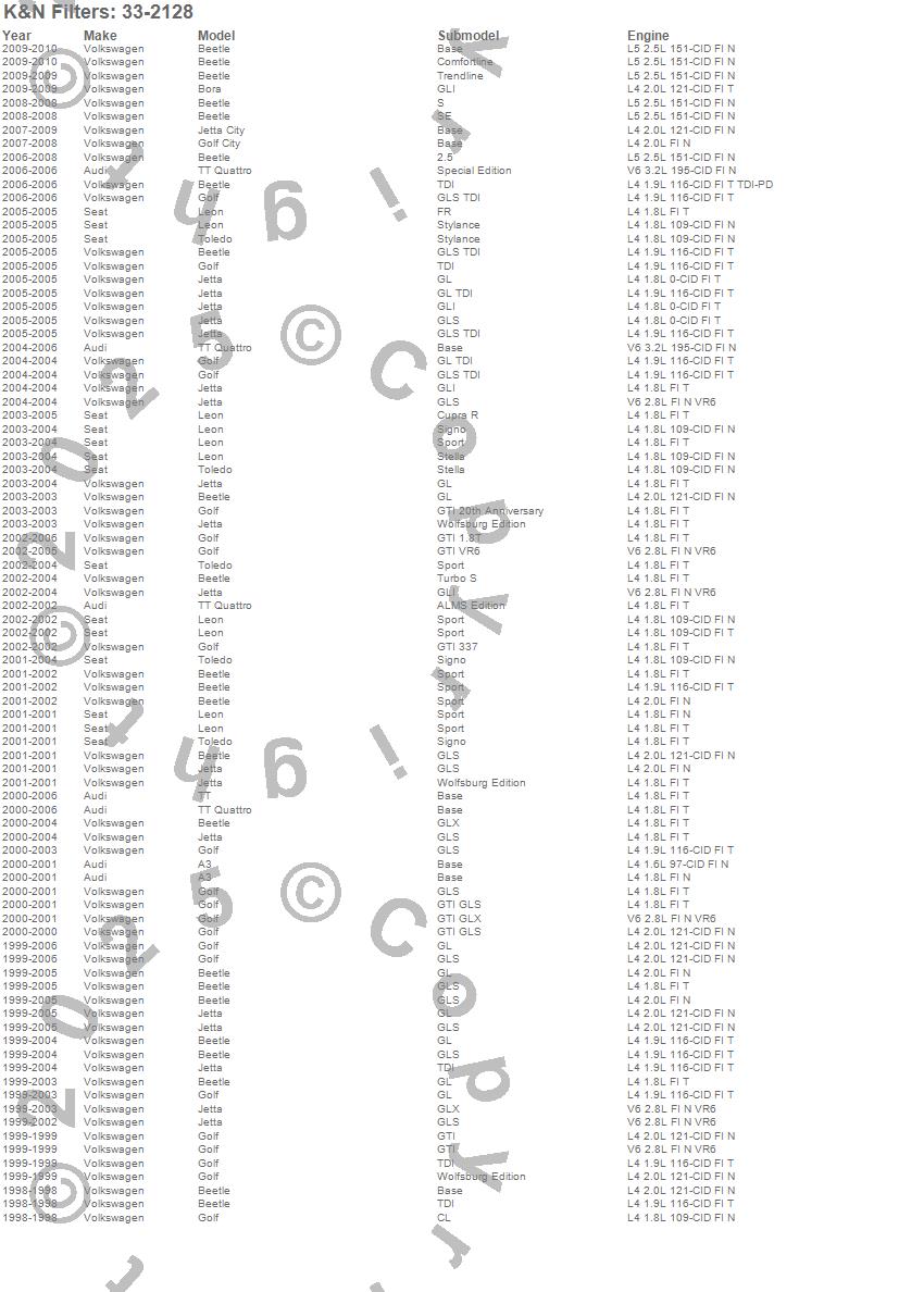 A3, Beetle, Golf, Golf City, Jetta, Jetta City, TT, TT Quattro, Audi, Volkswagen, 2010, 2009, 2008, 2007, 2006, 2005, 2004, 2003, 2002, 2001 more…