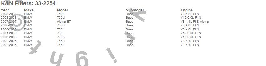 Below is an abreviated list of applications for the Air Filter.