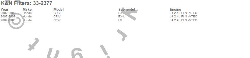 Below is an abreviated list of applications for the Air Filter.