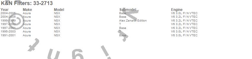 Below is an abreviated list of applications for the Air Filter.