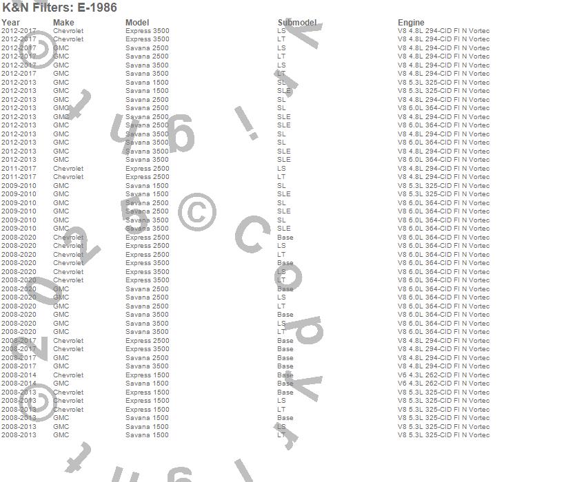 Express 1500, Express 2500, Express 3500, Savana 1500, Savana 2500, Savana 3500, Chevrolet, GMC, 2015, 2014, 2013, 2012, 2011, 2010, 2009, 2008 more…