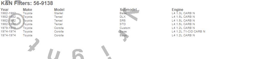 Below is an abreviated list of applications for the Racing Custom Air Cleaner.