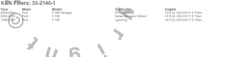 Below is an abreviated list of applications for the Air Filter.