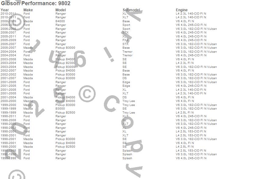 Below is an abreviated list of applications for the Cat Back Dual Sport Exhaust.